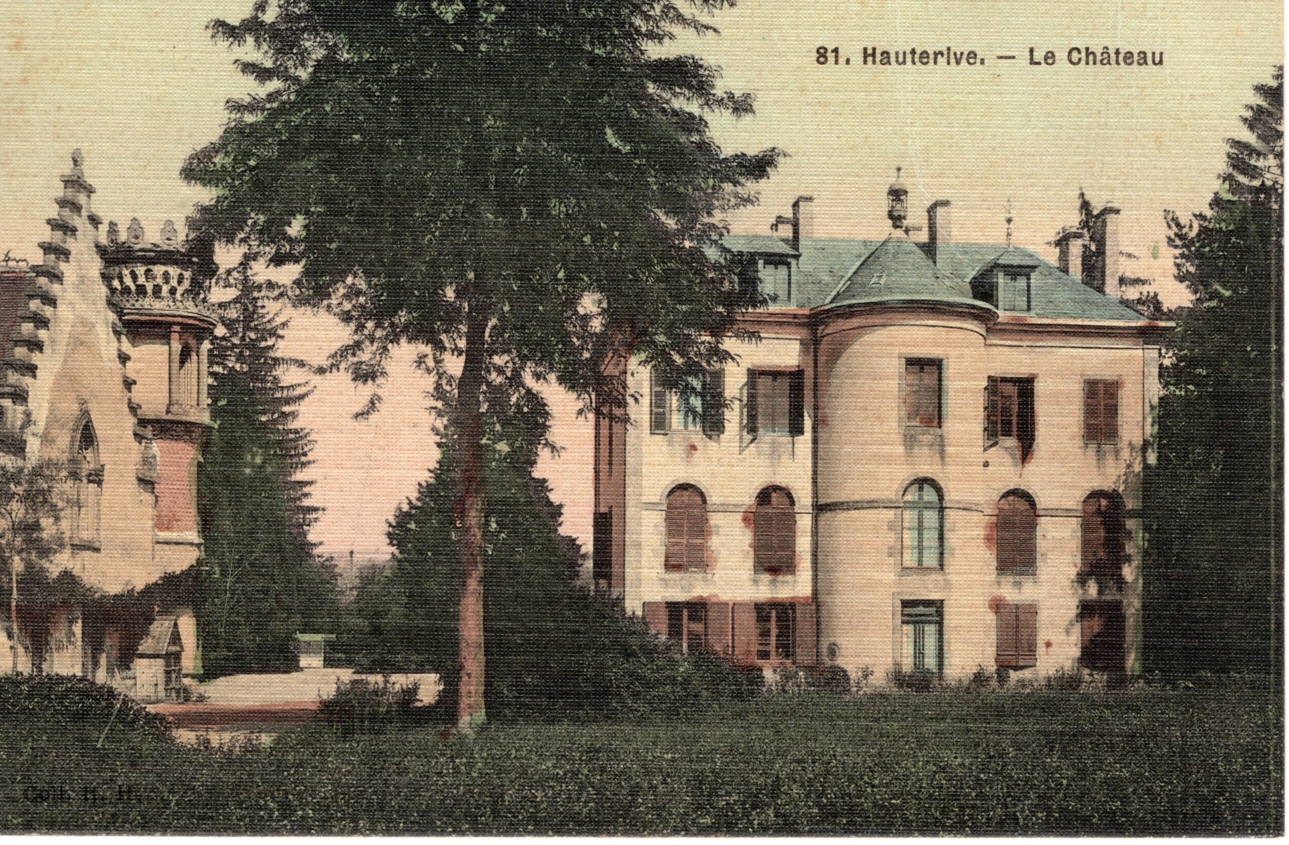 La propriété comprenait à gauche (par la rue de la Mairie) un bâtiment à deux niveaux, construit dans un style néo-gothique. Sa construction fut terminée en 1880 et abritait un château d’eau. Sur la façade sud, le premier niveau présente deux baies géminées inscrites dans une fenêtre ogivale.