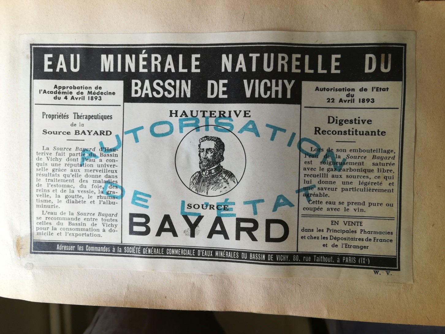 Etiquette bouteille eau minérale Bayard
