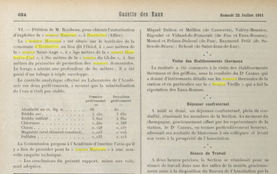Extrait de la Gazette des Eaux - 22 juillet 1911